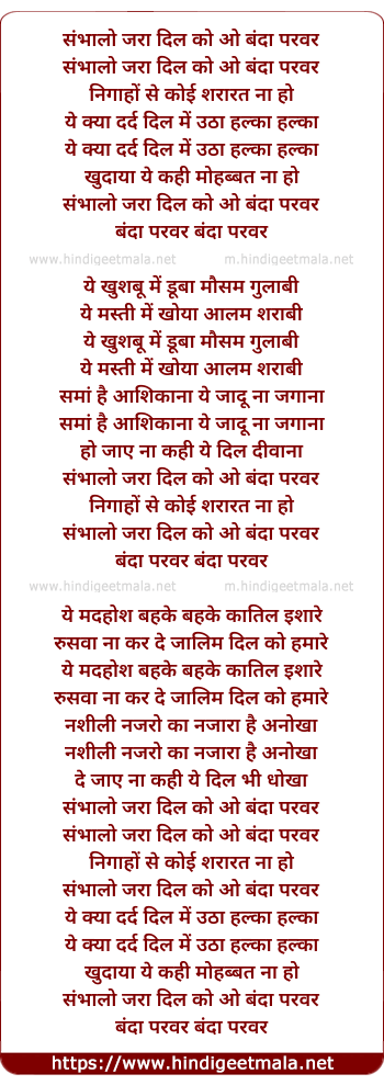 Lyrics of Sambhalon Zara Dil Ko - संभालो जरा दिल को