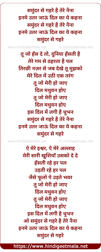 samunder se gehre hai tere naina