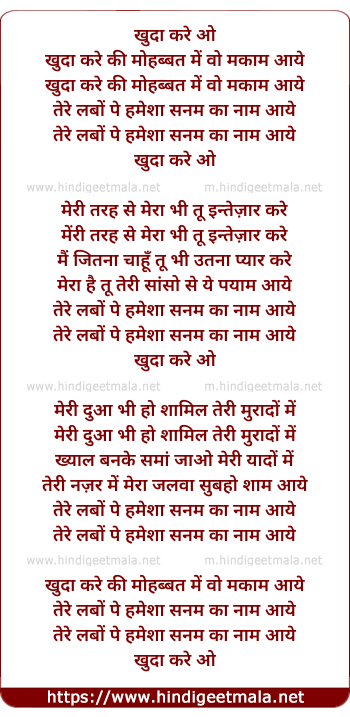 teri labo pe hamisha sanam ka name aye khuda kare ohhh meri Dua bhi ho