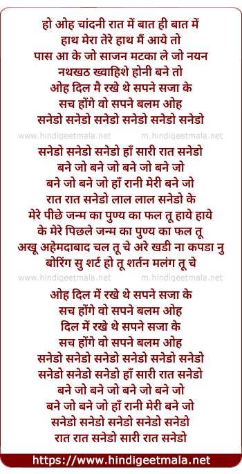Lyrics of Sanedo Sanedo Saari Rat Sanedo - सनेड़ो सनेड़ो सारी रात सनेड़ो