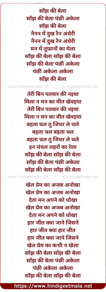 Lyrics of Sanjh Ki Bela - साँझ की बेला