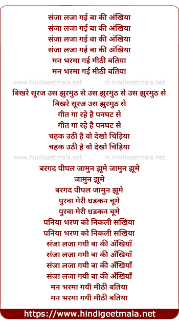 Lyrics of Sanjh Laja Gayi Baa Ki Ankhiya - संजा लजा गयी बा की अँखियाँ