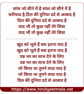Lyrics of Sans Jo Sine Me Hai - सांस जो सीने में है