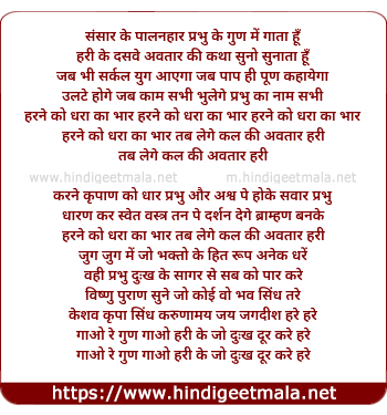 gaao re gun gaao hari ka jo dukh dur kare hare