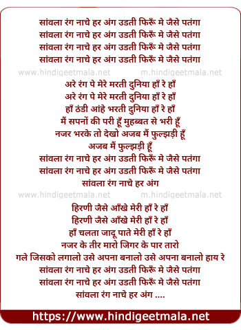 saawala rang naache har ang udti phirun mai jaise patanga