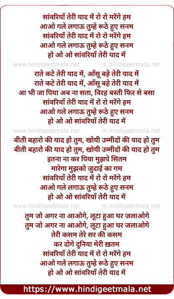 saanwariya teri yaad me ro ro marenge hum