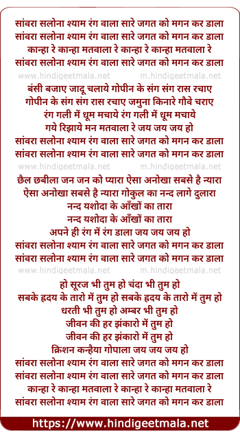 Lyrics of Sanwla Salona Shyam Rang Wala - सांवला सलोना श्याम रंग वाला