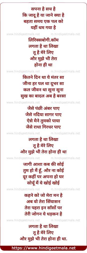 Lyrics of Sapna Hai Sach Hai - सपना है सच है