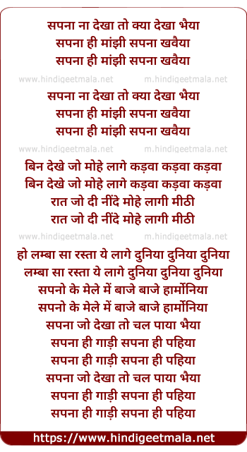 Lyrics of Sapna Na Dekha - सपना ना देखा