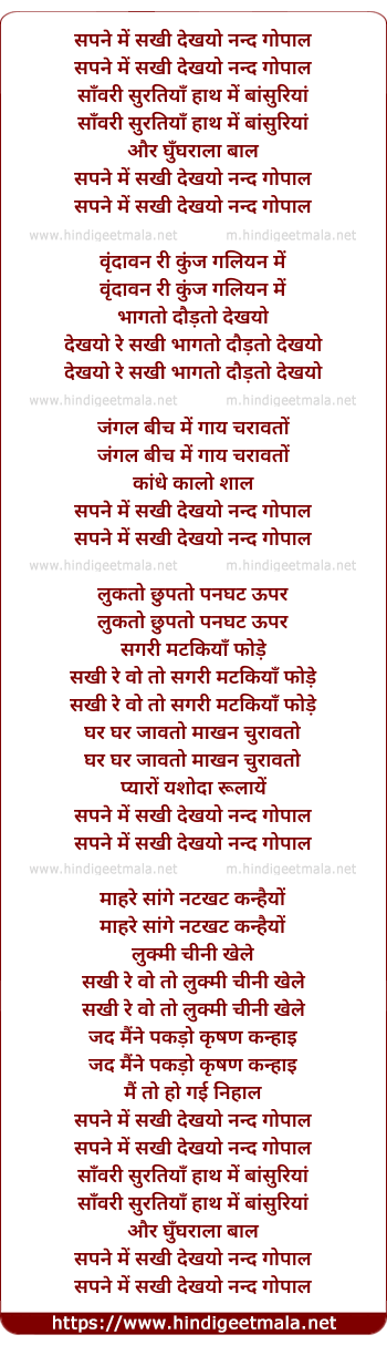 sapne me sakhi dekhyo nand gopal