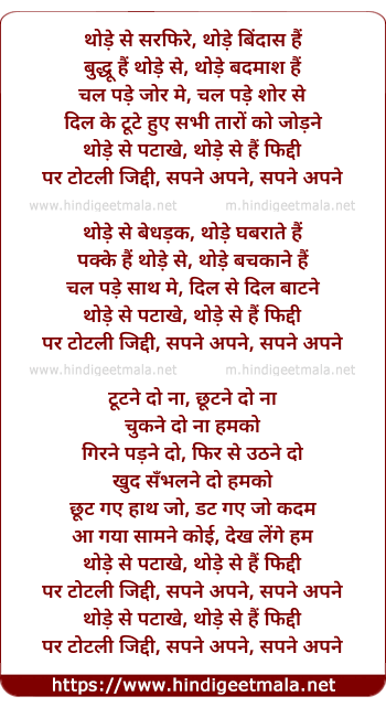 Lyrics of Sapney Apne, Thode Se Patakhe, Thode Se Hai Fiddi - सपने अपने, थोड़े से पटाखे, थोड़े से हैं फिद्दी