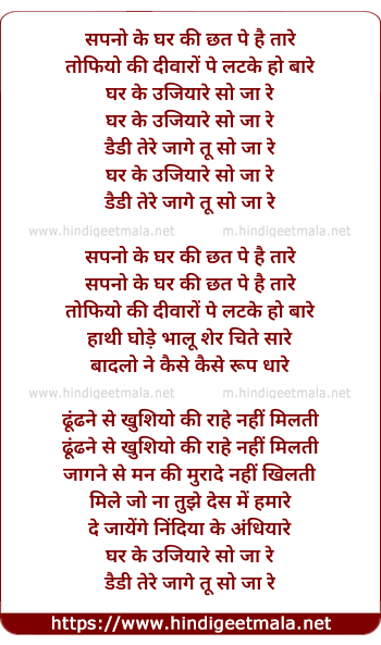 Lyrics of Sapno Ke Ghar Ki Chhat Pe Hai Taare - सपनो के घर की छत पे है तारे