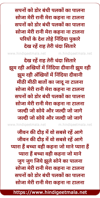 Lyrics of Sapno Ki Dor Bandhi Palko Ka Palna - सपनों को डोर बंधी पलकों का पालना