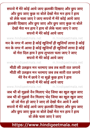 Lyrics of Sapno Me Mere Koi Aaye Jaye - सपनो में मेरे कोई आये जाए