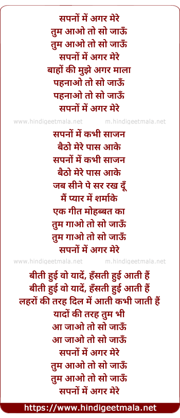 Lyrics of Sapnon Mein Agar Mere - सपनों में अगर मेरे