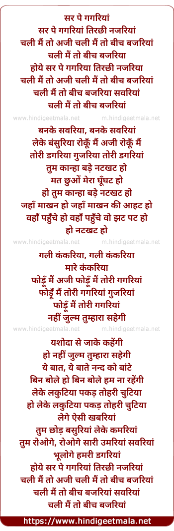 Lyrics of Sar Pe Gagariya - सर पे गगरियां