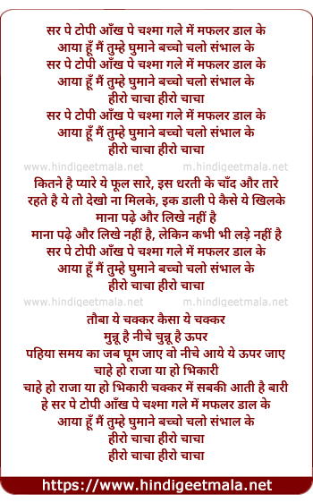 Lyrics of Sar Pe Topi Ankh Pe Chasma - सर पे टोपी आँख पे चश्मा
