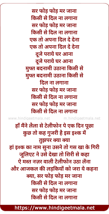 Lyrics of Sar Phod Phod Mar Jana - सर फोड़ फोड़ मर जाना