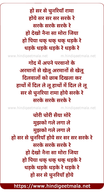 Lyrics of Sar Se Chunariya Rama Hoye, Sarke Re - सर से चुनरियाँ रामा होये,सरके रे