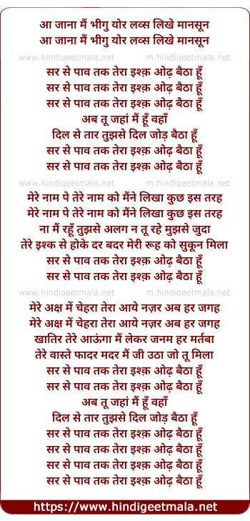 Lyrics of Sar Se Paon Tak - सर से पाव तक