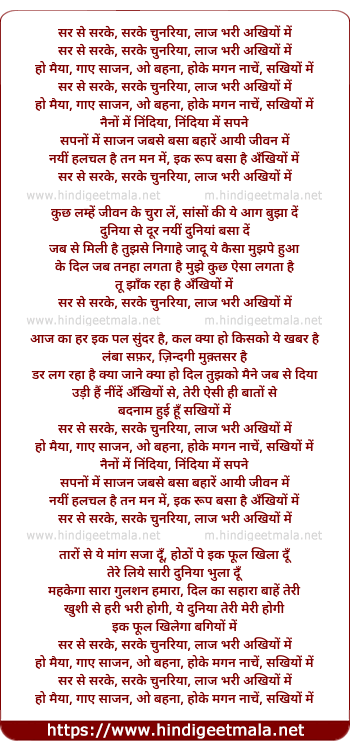 sar se sarke, sarke chunariya, laaj bhari ankhiyo me