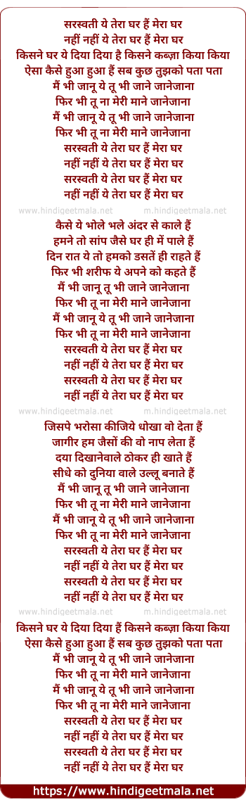 Lyrics of Saraswati Ye Tera Ghar Hai Mera Ghar - सरस्वती ये तेरा घर हैं मेरा घर