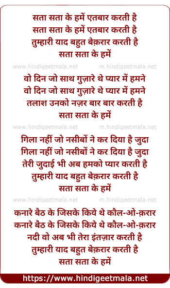 Lyrics of Sataa Sataa Ke Hamen Ashqabaar Karati Hai - सता सता के हमें एतबार करती है