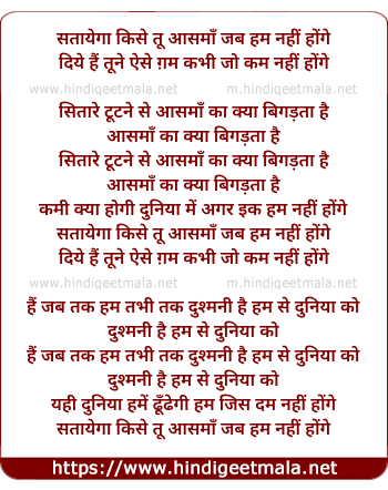 Lyrics of Sataayegaa Kise Tu Aasamaan - सतायेगा किसे तू आसमाँ