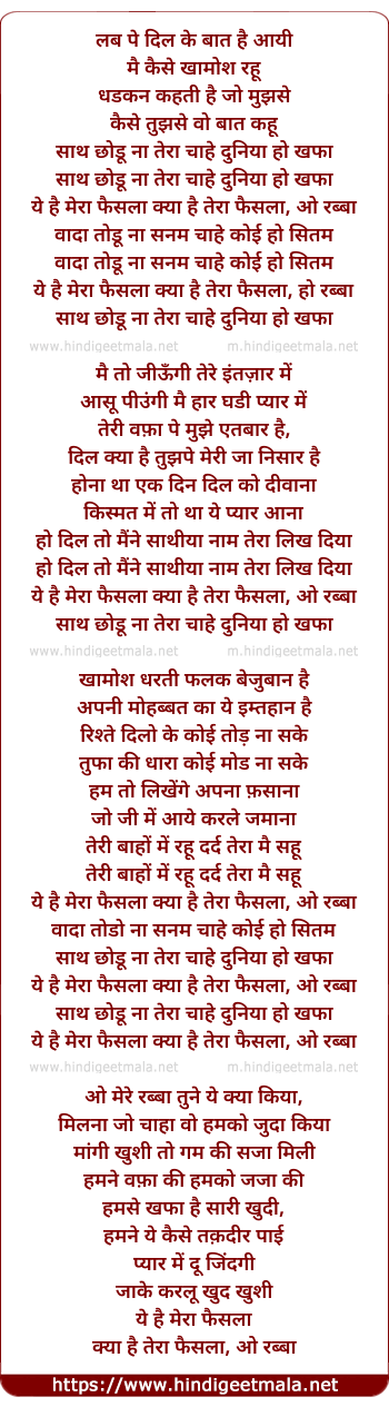 ye hai mera faisla kya hai tera faisla, ho rabba