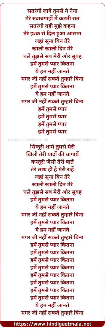 the lyricist. satrangi wonderfully connected to hamein tumse pyaar