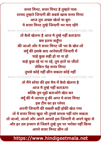 Lyrics of Sattar Minute Hai Tumhare Pas - सत्तर मिनट है तुम्हारे पास