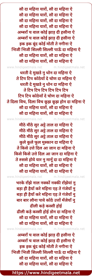 Lyrics of Saun Da Mahina - सौ दा महिना