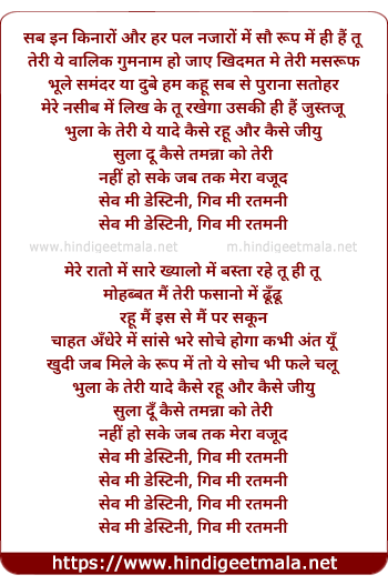 Lyrics of Save Me Destiny - सेव मी डेस्टिनी