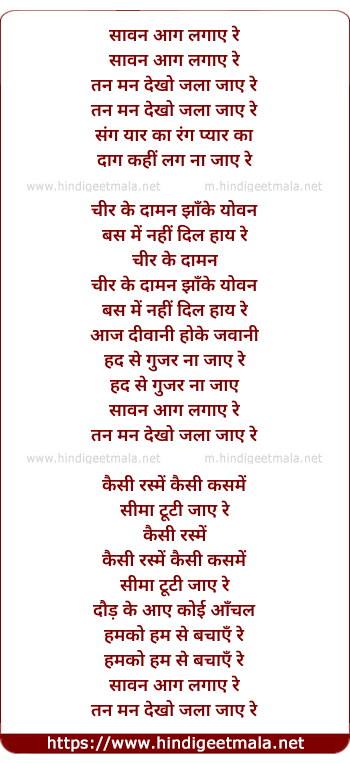 Lyrics of Sawan Aag Lagaye Re - सावन आग लगाये रे
