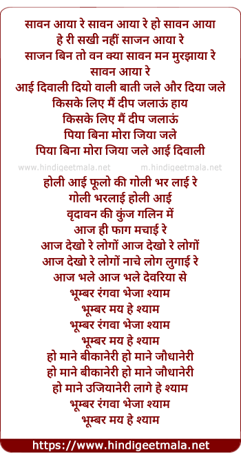 Lyrics of Sawan Aaya Re Sawan Aaya Re - सावन आया रे सावन आया रे