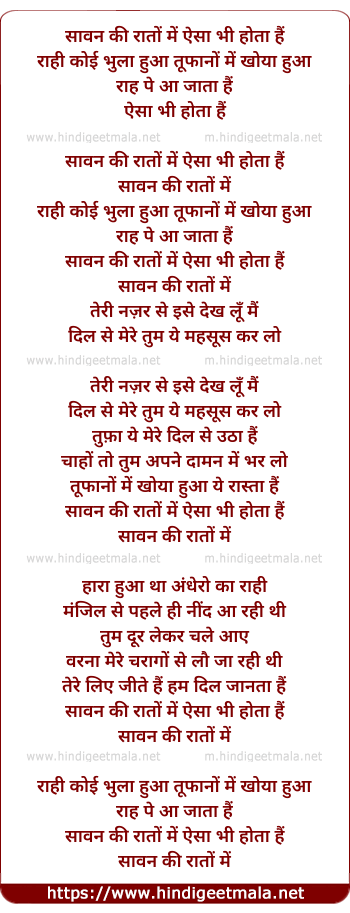 Lyrics of Sawan Ki Raato Me Aisa Bhi Hota Hai - सावन की रातों में ऐसा भी होता हैं