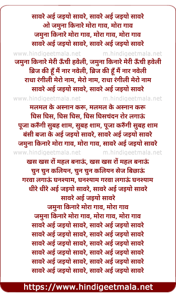Lyrics of Saware Aai Jaiyo Saware - सावरे अई जइयो सावरे