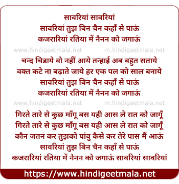 Lyrics of Sawariya Sawariya - सावरियां सावरियां