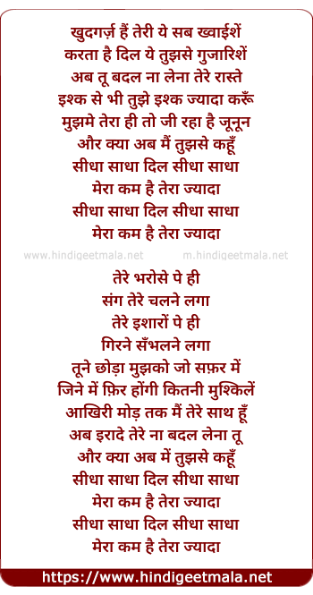 Lyrics of Seedha Saadha - खुदगर्ज़ हैं तेरी ये सब ख्वाईशें