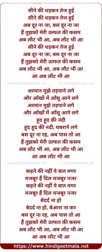 Lyrics of Seene Ki Dhadkan Tej Hui - सीने की धड़कन तेज हुई