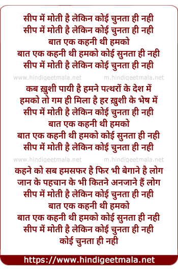 Lyrics of Seep Mein Moti (Male) - सीप में मोती (मेल)
