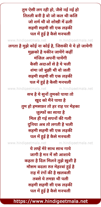 Lyrics of Sehami Sehami Si Ik Ladaki - सहमी सहमी सी एक लड़की