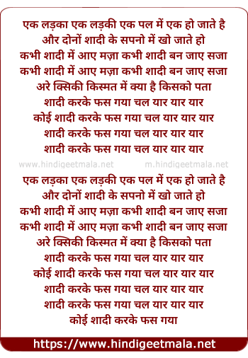 Lyrics of Shaadi Karke Phas Gaya - कोई शादी करके फँस गया