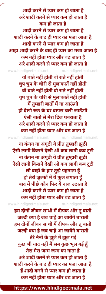 Lyrics of Shaadi Karne Se Pyar Kam Ho Jata Hai - शादी करने से प्यार कम हो जाता है