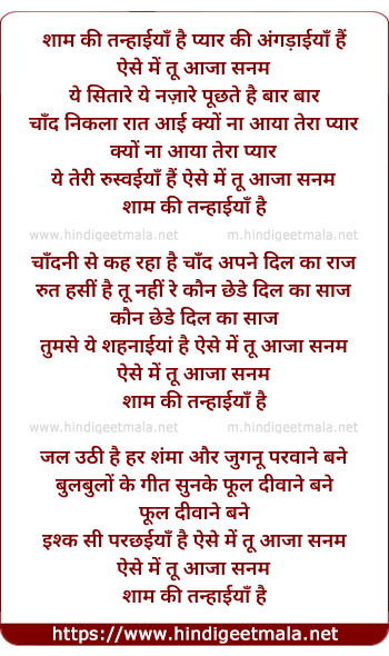 Lyrics of Sham Ki Tanhaiyan Hain - शाम की तन्हाईयाँ है