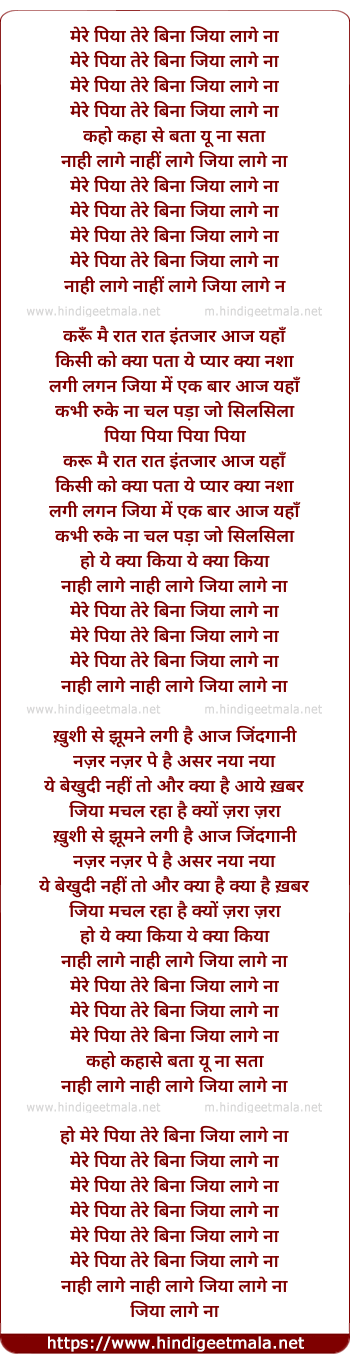 ho mere piya tere bina jiya laage na