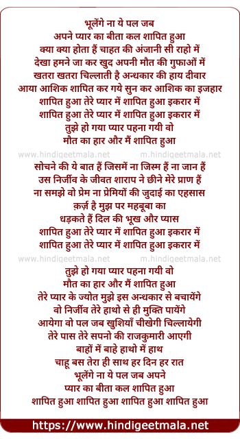 Lyrics of Shaapit Hua, Kya Kya Hota Hain - शापित हुआ, क्या क्या होता हैं