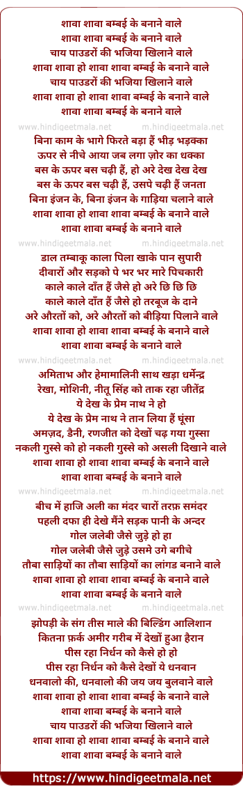 Lyrics of Shaba Shaba Bambai Ke Banane Wale - शावा शावा बम्बई के बनाने वाले