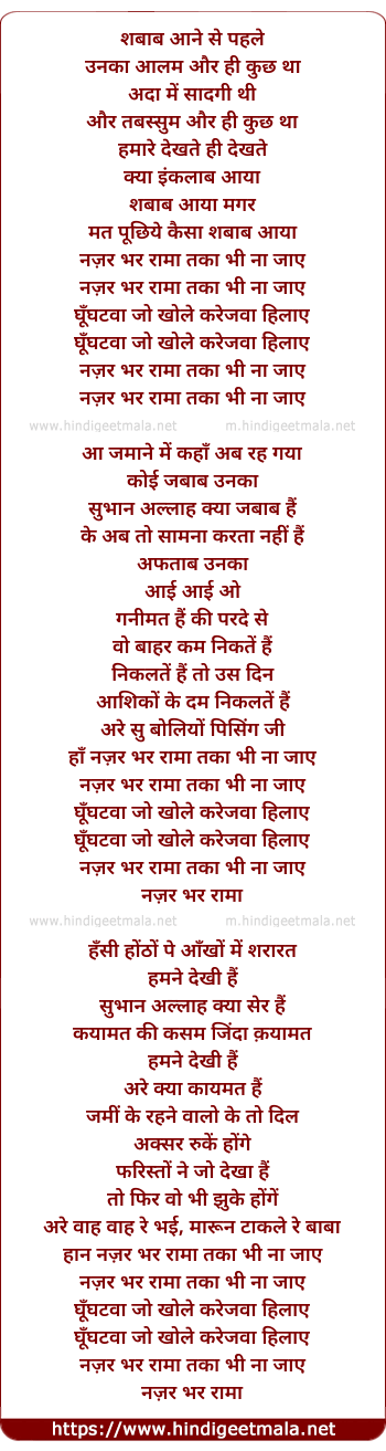 Lyrics of Shabab Aane Se Pehle - शबाब आने से पहले