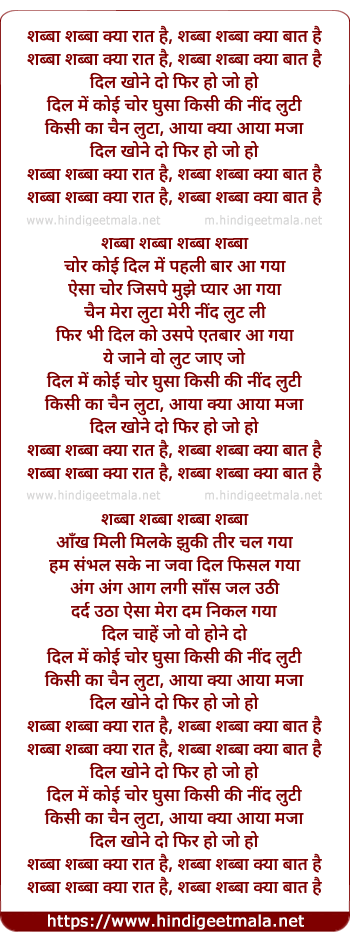 shabba shabba kya raat hai, shabba shabba kya raat hai